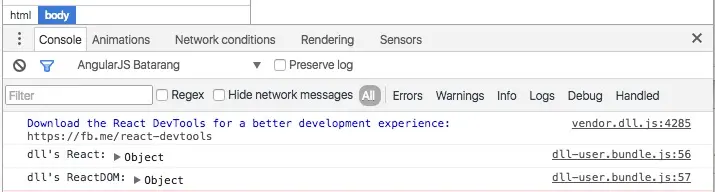 鉴于现有的资料对于这两个插件的解释都不是很清楚,笔者这里翻译了一篇日本同学的文章,通过一个简单的例子来说明一下这两个插件的用法。我们举例,把 react 和 react-dom 打包成为 dll bundle。