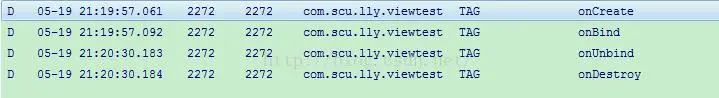 }点击“bindService”按钮,我们就通过bindService()将传进来的Intent中的Service启动了,启动时Log打印如下: