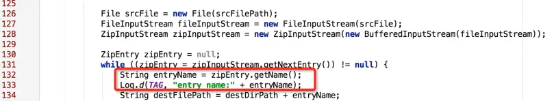 在使用java.util.zip包中ZipInputStream类的进行解压操作时,进行检查,示例如下:
