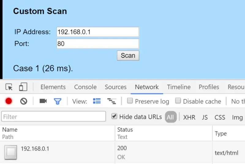探测 IP 端口开放原理就是向目标发送请求,看是否有回应。在上面的 img 中是在加载成功和失败体现出来的。img 嫌慢也可以试试别的嘛,经过一番搜索找到了这个,这个和这个。