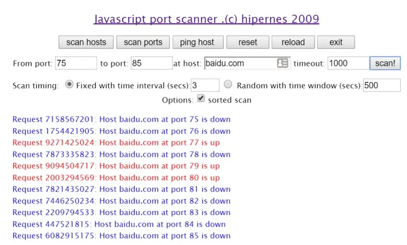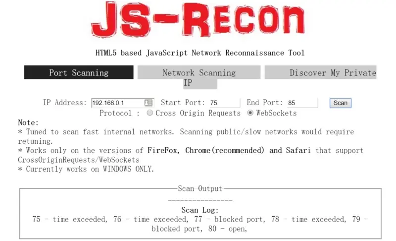 功能比第一个多不少,尝试多种协议,80 端口可以探测出来77,79 被浏览器屏蔽,马上触发事件,所以误报了。