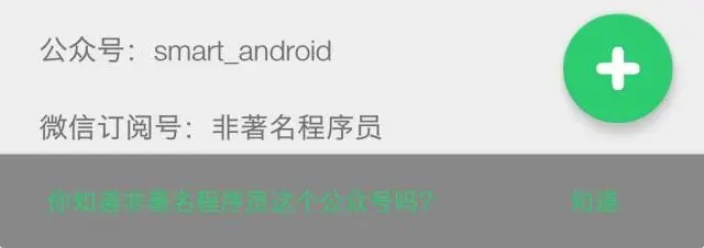 final Snackbar snackbar = Snackbar.make(view, "关注非著名程序员公众号了吗?", Snackbar