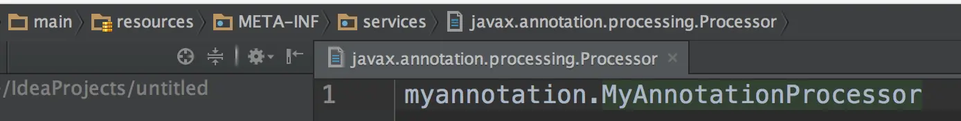 在java的同级目录新建resources目录, 新建META-INF/services/javax.annotation.processing.Processor文件, 文件中填写你自定义的Processor全类名