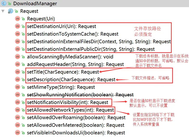 request.setAllowedOverRoaming(false);//漫游网络是否可以下载