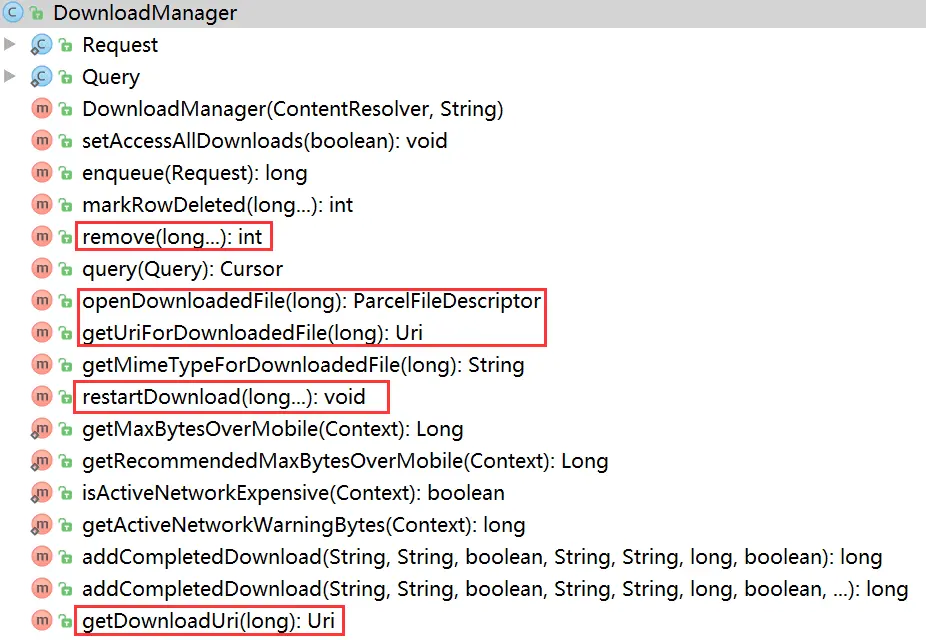 DownloadManager downloadManager= (DownloadManager) mContext.getSystemService(Context.DOWNLOAD_SERVICE);