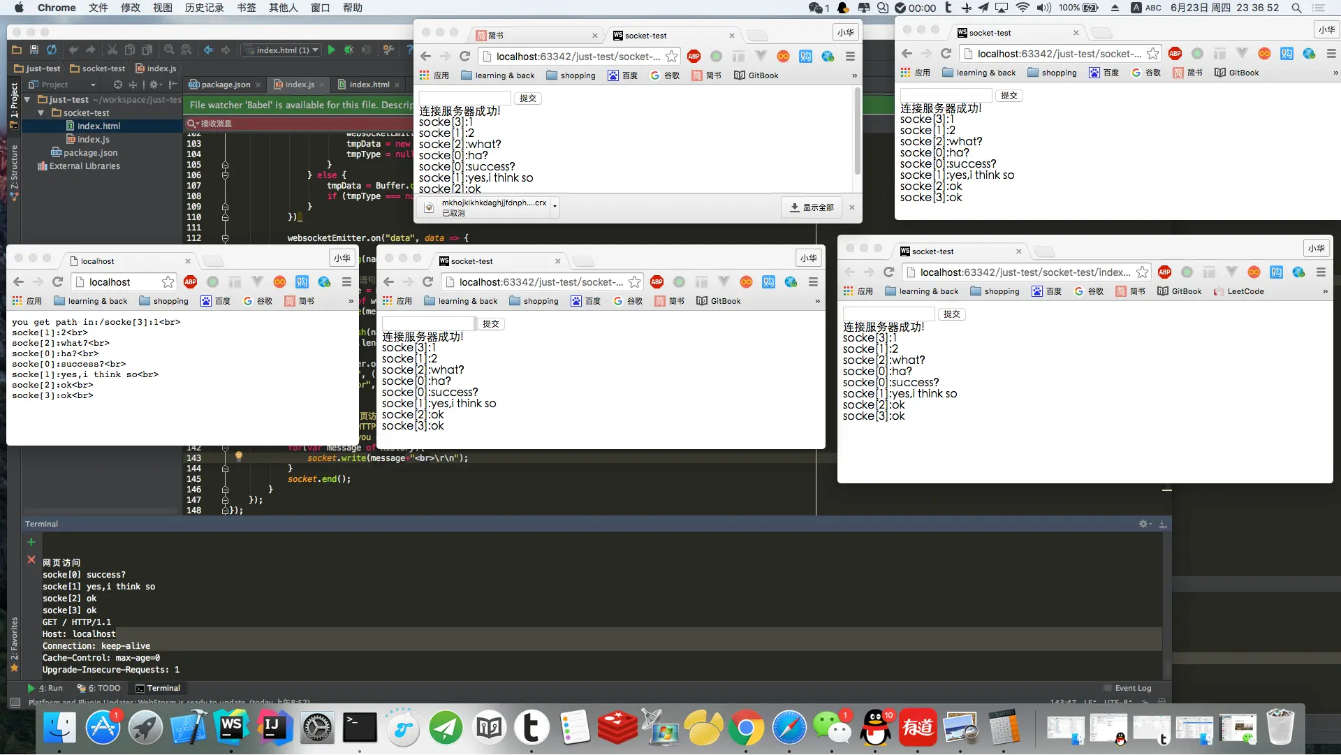 于是,我就顺便写了一个这样的一个demo(顺便实现了聊天室),代码量也从原来简易50行,变成了150行,这个demo纯娱乐学习,实际工作中,最好不要这样写,除非你经过深思熟虑,下面demo中,存在的一些问题,因为是简易实现demo的原因,就不进行更多的扩展了