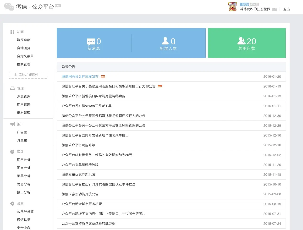 登录到微信后台,截图如下: