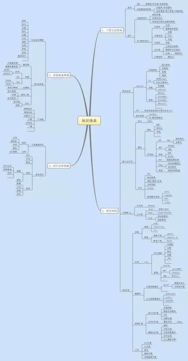 研发领域研发领域梳理我主要针对开发者,分为嵌入式、移动和web三类;(PC端开发暂时不罗列在里面,感觉现在做的人很少了吧:云计算和大数据考虑其火爆程度,单独罗列出来)