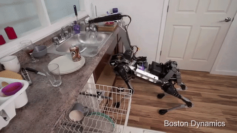 这个机器人叫SpotMini,顾名思义,就是此前的四足机器人Spot 的迷你版。