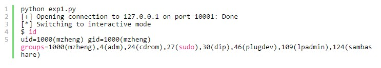 OK,现在溢出点,shellcode和返回值地址都有了,可以开始写exp了。写exp的话,我强烈推荐pwntools这个工具,因为它可以非常方便的做到本地调试和远程攻击的转换。本地测试成功后只需要简单的修改一条语句就可以马上进行远程攻击。