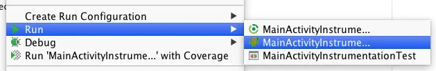 你也可以右键点击域名运行测试,选择Run>MainActivityInstrume...(第二个带Android图标的)