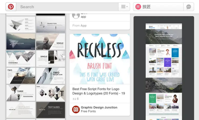 每天早上上班之前,我都会浏览Pinterest上的更新,它能根据我的兴趣爱好设置来推荐那些优秀的设计资源。当看到优秀的作品时,我会将它们保存到自己的Board中,而对于那些需要细读的文章,我则会转发到我的Pocket中,等有时间了再仔细阅读。