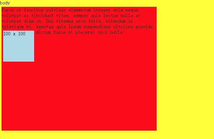 100x100的蓝色盒子为左浮动元素,200x200的红色盒子为蓝色盒子的容器,可见蓝盒子的左边界没有超出红色盒子的左边界。
