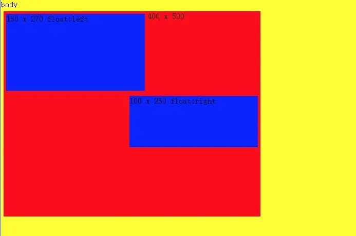 左浮动盒子的宽度(270)+有浮动盒子的宽度(250)> 容器的宽度(500),所以右浮动盒子并没有和左浮动盒子并列,而是在左浮动盒子的下方。