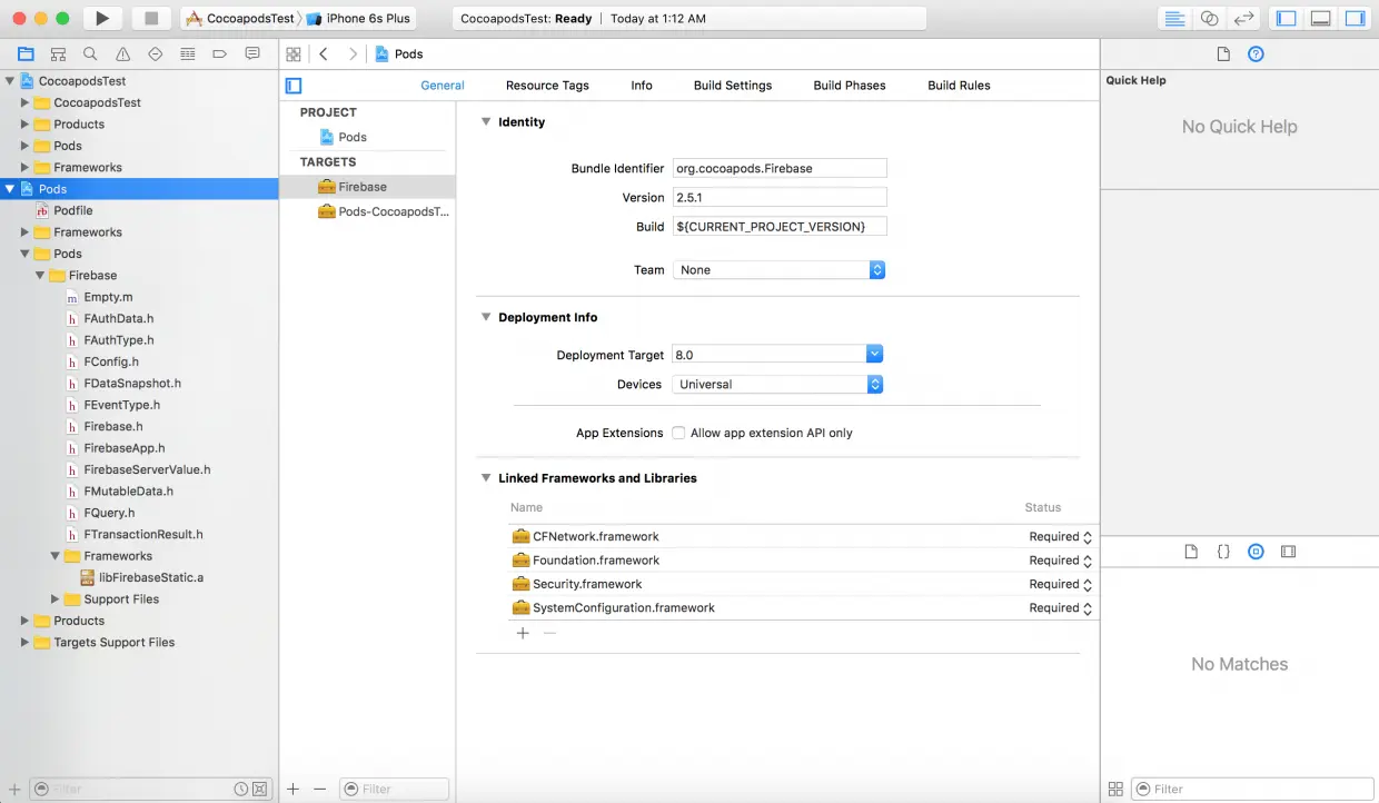 target 'CocoapodsTest' do use_frameworks! pod 'Firebase'