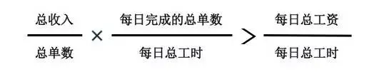 如上图公式,比如对于一家O2O类型的美甲店来说,我可以用某段时间以来的总收入除以总单数得出平均每单美甲的收入。然后用每日完成的总单数除以每日总工时,得出每个美甲师每个工时能够完成的单数。上面这两个结果相乘得出的结果就是每小时每个美甲师能够为公司赚得的收入总和。