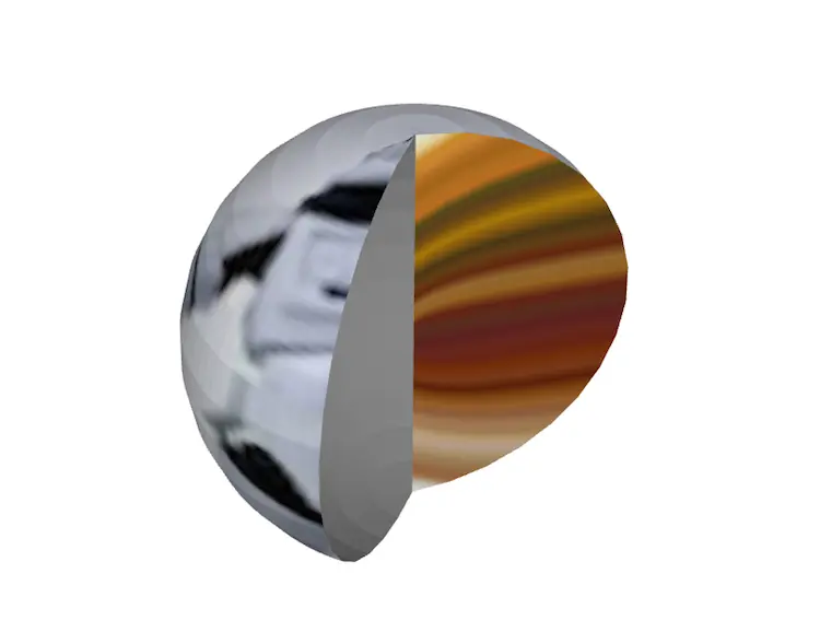 就如上图所示,球被裁切掉了一部分,被裁切的两个面可以单独控制,通过 shape3d.from.* 和 shape3d.to.* 两组参数就可以单独控制两面的显示效果,在上图中,我通过 shape3d.to.visible 将 to 的面隐藏了,将 from 面通过 shape3d.from.image 设置了新的贴图,具体代码如下: