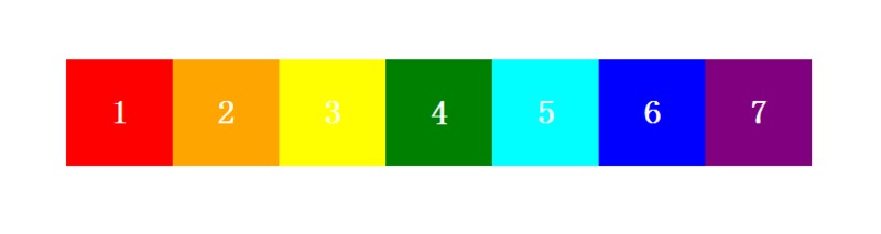 ,这7个 需要应用7中不同颜色的 background-color ,需求很简单,如下是简易的效果图。