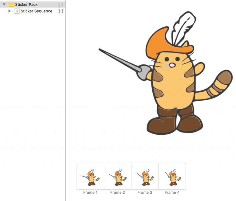 制作静态表情很容易,但我需要给 Fit Cat 制作不同的动图。我记得在 WWDC 的 iMessage Apps and Stickers, Part 1 中有提到动图表情。演讲比较简单,但在 Xcode 上通过 UI 创建表情很不直观,所以这里我详细记录了动图表情的制作过程,这样你就不用看演讲了。