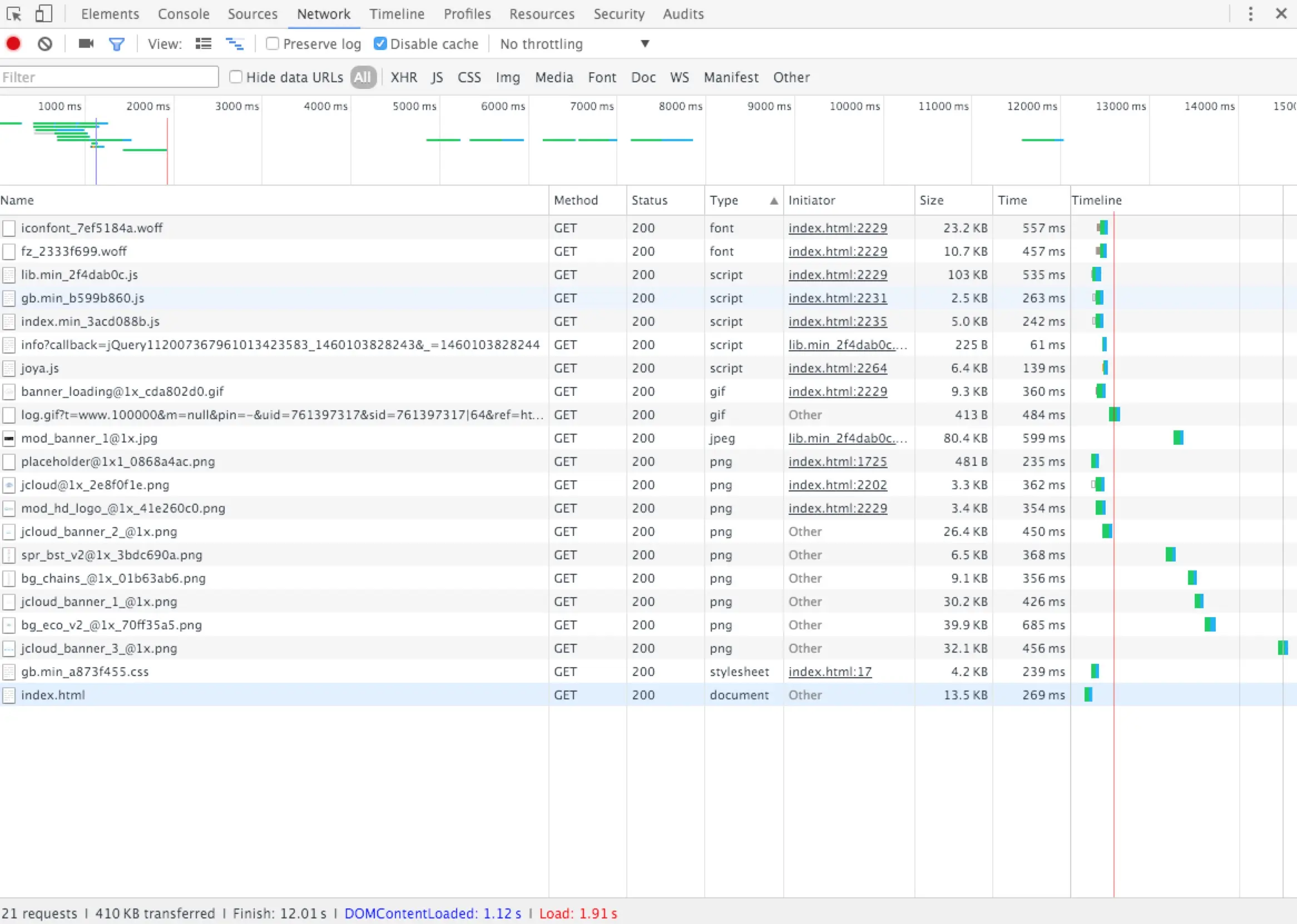 旧版首页加载的时候,一共有40个请求,其中图片的请求就有 31 个,占总请求数的 77%
