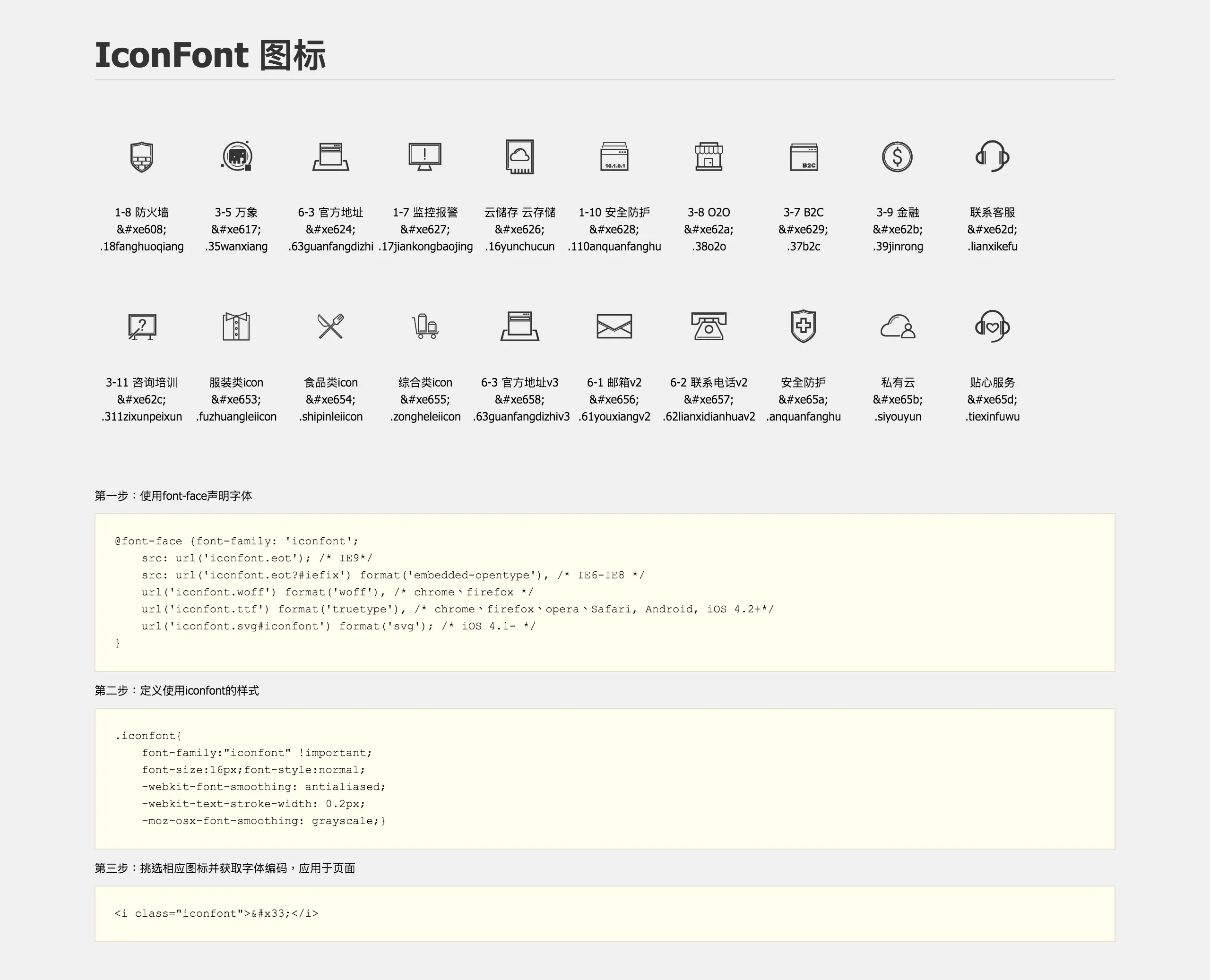 新版首页出现了 33 个单色图标,这些图标复用性很强,同一个图标在不同页面都有出现,而且同一个图标还有不一样的尺寸,如果用传统方法做成图片的话图片数量会很多,即使全部合并成 sprite 图,图片的 K 数也会很大,而且后期如果有修改的话还得重新合并 sprite 图,因此这次首页改版所有的纯色图标的高清适配全部使用 iconfont 图标: