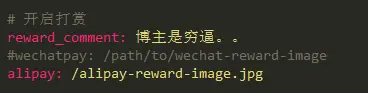 NexT主题非常吸引我的一点就是他支持打赏功能,这让我这种穷逼程序猿又看到了生路(多半也没人会给我打赏),以下一段配置即可在每篇博文下边开启打赏功能。