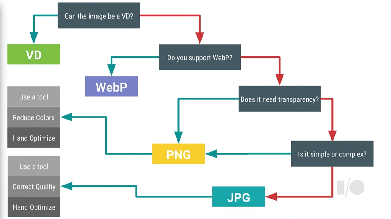 对于 PNG 和 JPG,在按上面的流程图选择正确的类型后还需要进行一个步骤:压缩,这也是很多开发者忽略的一点。
