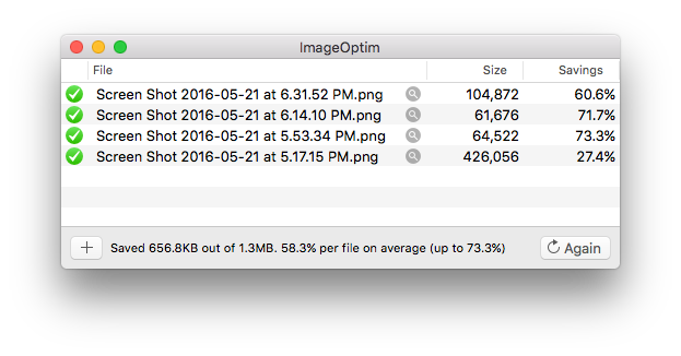 个人最喜欢的图片压缩工具是 ImageOptim,集成了很多好用图片压缩库: