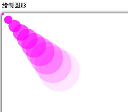 就是我没有告诉大家该如何去绘制圆,之所以没有说是因为绘制圆实际上是因为 CanvasRenderingContext2D 对象只提供了两个绘制矩形的方法,并没有直接提供绘制圆,椭圆等几何图形的方法。为了在 Canvas 上绘制更复杂的方法,必须在 Canvas 上启用路径,借用路径来绘制图形。