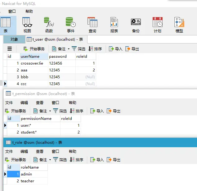 findUserByUserName(String username)根据username查询用户,之后Shiro会根据查询出来的User的密码来和提交上来的密码进行比对。findRoles(String username)根据username查询该用户的所有角色,用于角色验证。findPermissions(String username)根据username查询他所拥有的权限信息,用于权限判断。