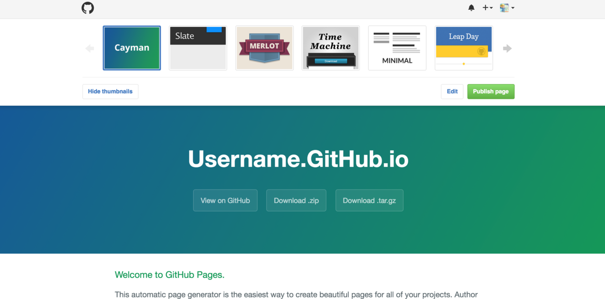 markdown: kramdown等待大概1-2分钟之后,再次刷新username.github.io,就能看到我们的blog了。