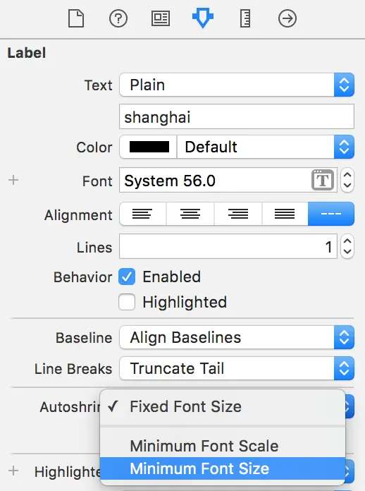 进入到Attributes Inspector面板,找到Autoshrink属性,把“fixed font size”切换成“minimum font size”