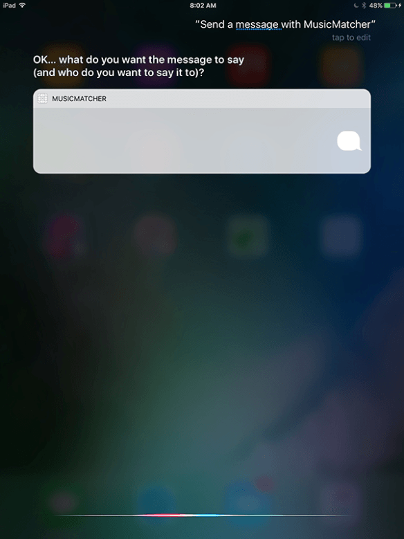 这里我们创建了一个字符串并调用 success 函数。你也可以调用 disambiguation 、confirmationRequired 或 unsupported 。后面会详细说明区别,现在先介绍如何使用 Siri 提供的数据。