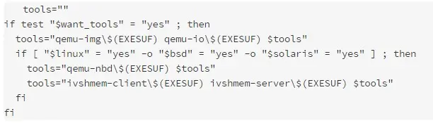 当命令行中有–disable-tools选项时,脚本中的禁用want_tools宏将被设置为”no”,这个宏默认为”yes”。当want_tools宏为”yes”时,会对tools宏进行设置,下面是与want_tools有关的设置tools宏的代码: