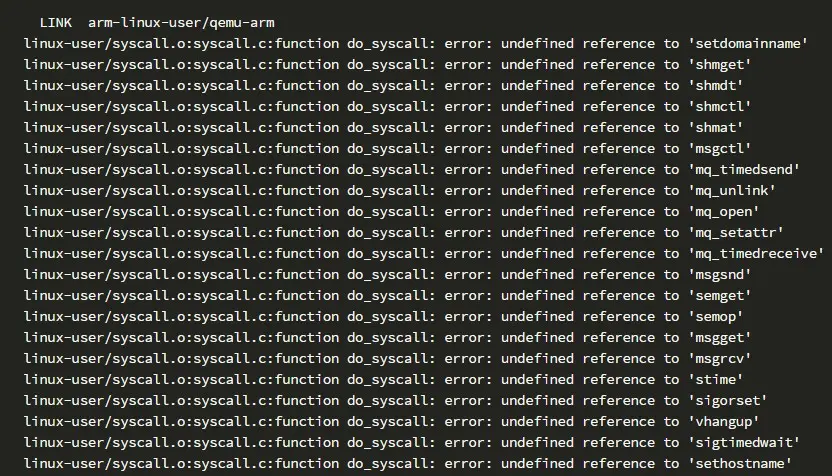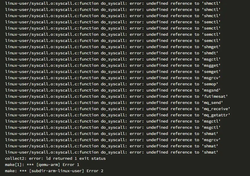 将这个链接中的源文件都下载下来:android-ifaddrs,将下载下来的文件拷贝到qga/目录下。然后找到qga/Makefile.objs文件,将”ifaddrs.o”插入”qga-obj-$(CONFIG_POSIX)”宏中。