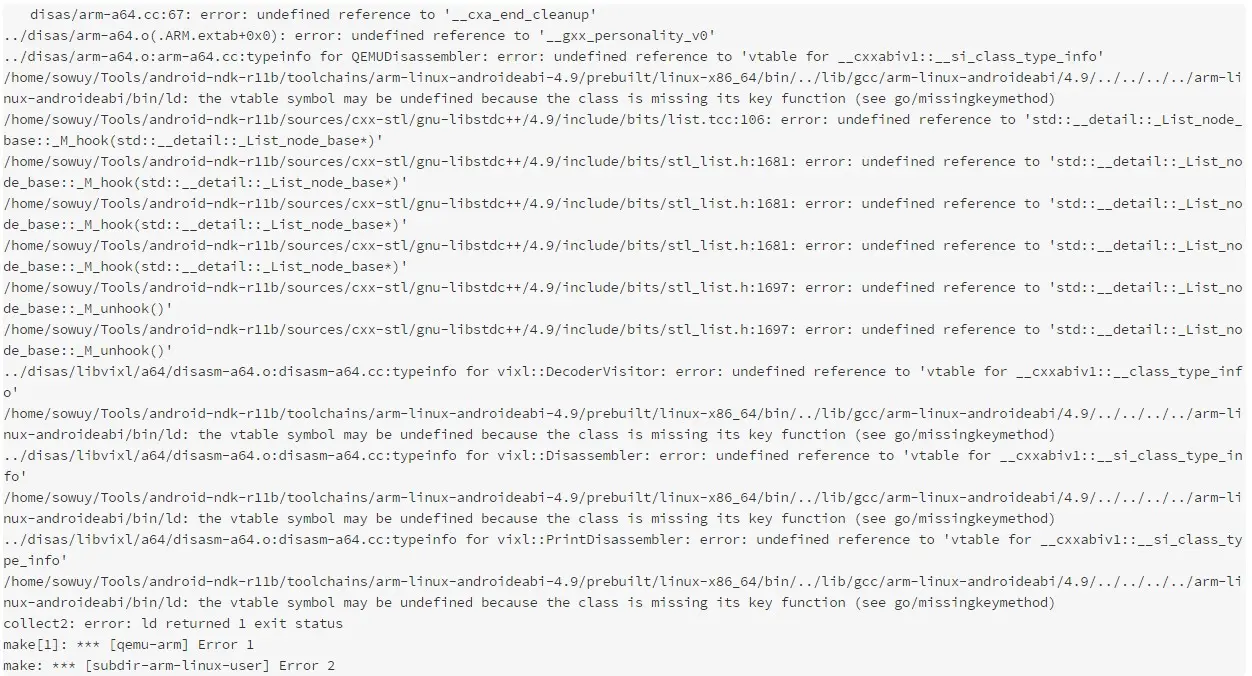 disas/arm-a64.cc:67: error: undefined reference to ‘__cxa_end_cleanup’