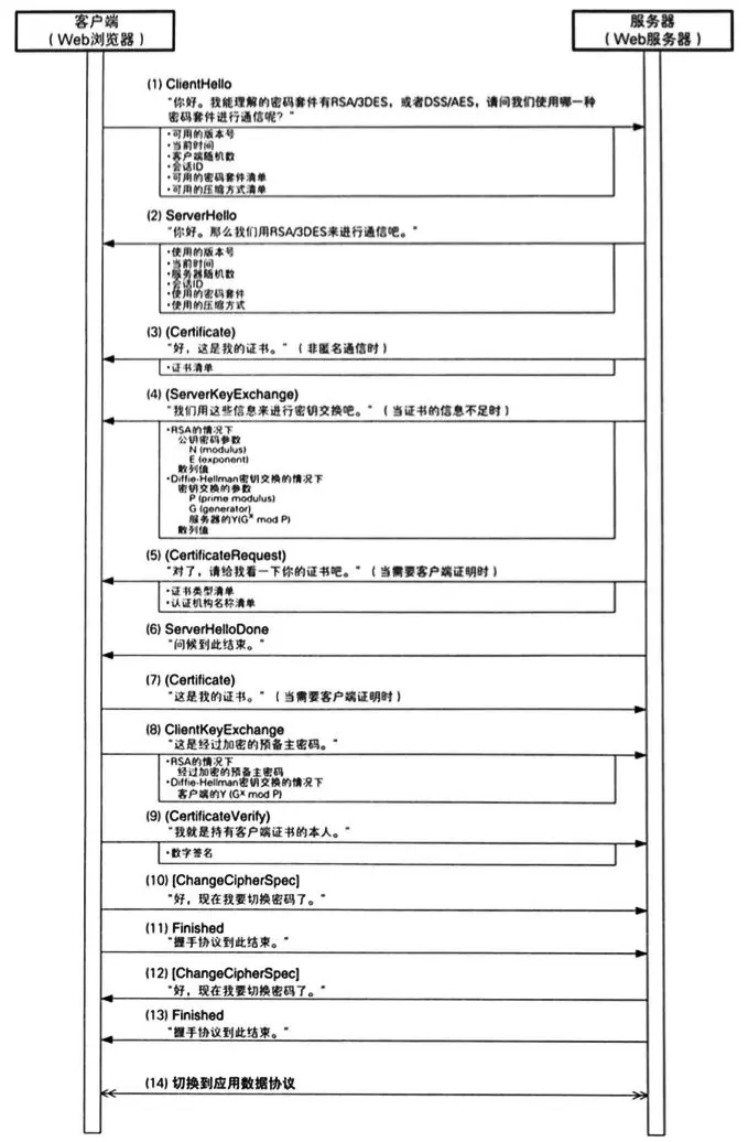 在此之后,客户端和服务器会使用应用数据协议和TLS记录协议进行密码通信。从结果来看,握手协议完成了下列操作: