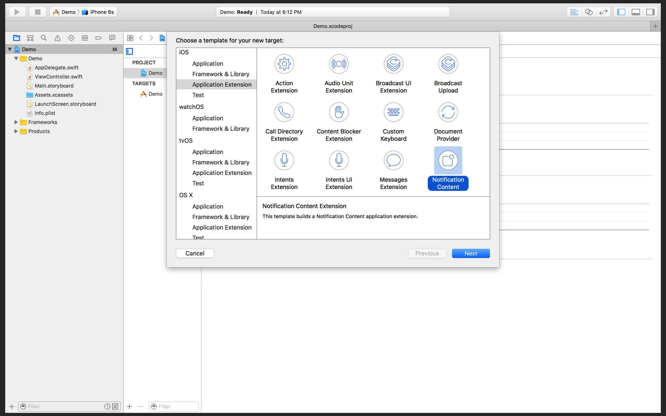 2.创建Notification content extension