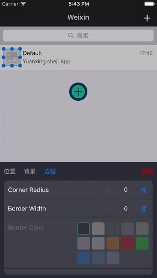 控件标配基本的属性设置,如大小,位置,颜色,文本,透明度,边框,圆角。