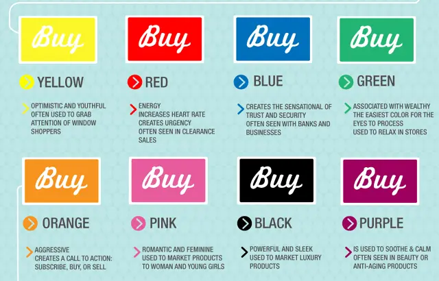 当我们感觉被迫要买一些东西时,颜色能发挥很重要的作用。下面是数据分析公司 KISSmetrics 针对颜色对我们的购买行为的影响绘制出的一张非常棒的信息图。