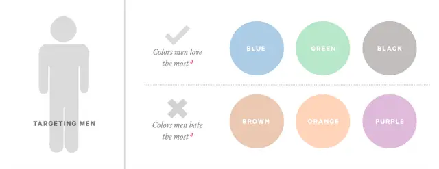 如果你的程序主要面向男性用户,那在颜色的取舍上就有些不同了,因为男人们更喜爱蓝色,绿色及黑色,而不中意棕色,橘色和紫色。