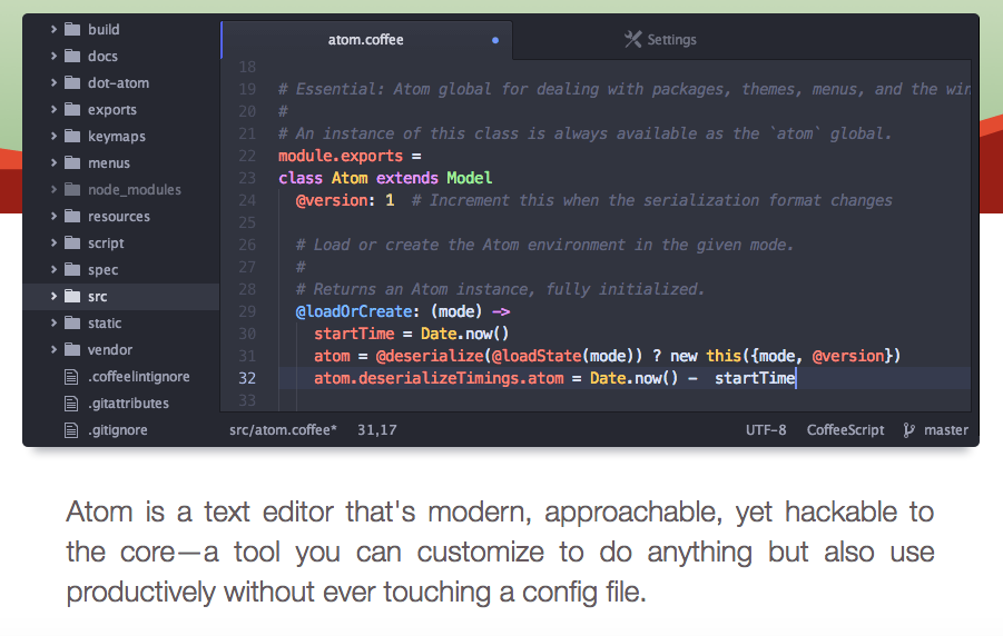 Atom 是一个开源产品, 它最突出的特性是可扩展性比较强。 提供了强大的插件中心。 你可以通过这些插件把它配置成各种形态。