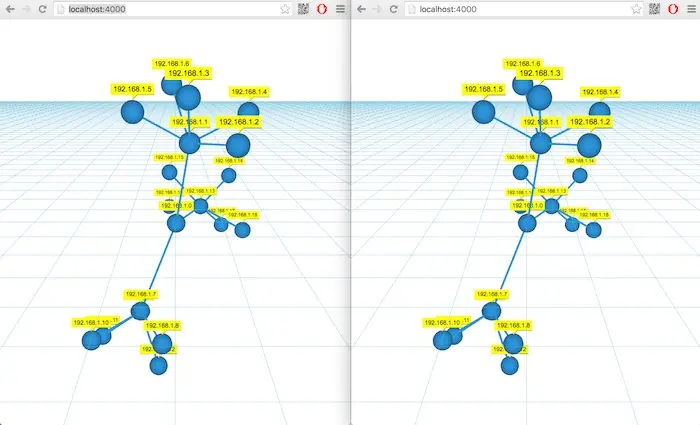 我们先来聊聊这次 Demo 的思路吧,首先我要有一个 3D 的拓扑图组件,在上面创建几个节点,然后通过拉力布局(ForceLayout)将这些节点自动布局,但是有一定,需要在不同的网页窗口下,对应节点的位置是一样的,简单地说就是不同网页窗口所呈现的节点布局是一样,而且拖动不同网页窗口中的任意的节点,都将更新所有页面窗口,让所有窗口的呈现都是一样的。