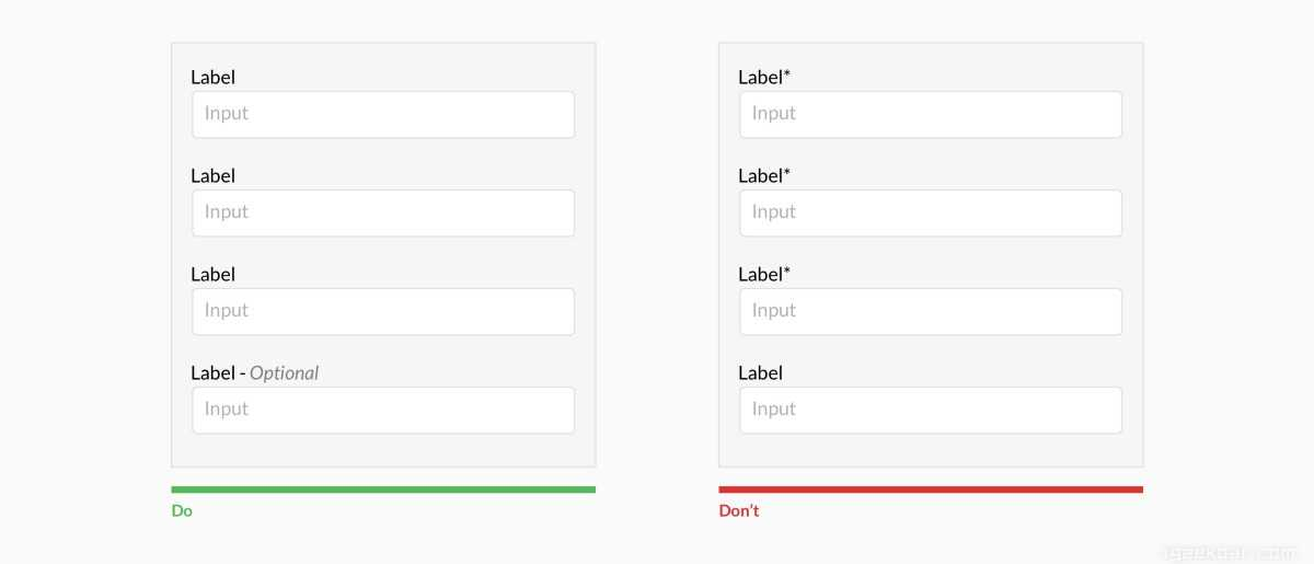 优化原因:调查显示,标签放在上侧与放在左侧相比,用户有更高的表单完成率,并且这样的设计对移动端的兼容性更高。然而当右侧是可以下拉的选择框时,把标签放在左侧更便于用户一并阅读,还可以降低表单的总高度。