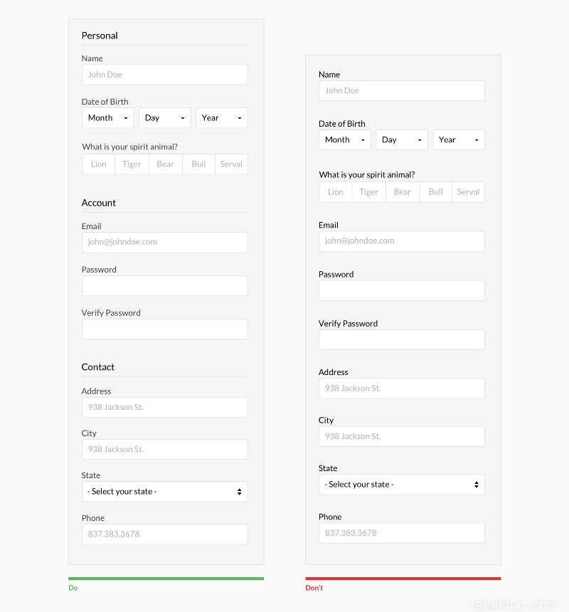 优化原因:一条长长的表单会让人感到压抑。创建一些有逻辑性的分组可以让用户觉得这个表单填写起来更简单快捷。