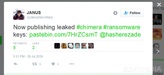 近日,暗网的一个RaaS (勒索软件即服务)门户网站运营者,Twitter用户名为“Janus”的黑客公布了Chimera勒索软件秘钥,并在一份声明中对自己的行为做出了解释。Janus窃取了他所能发现的所有Chimera勒索软件的秘钥,并将其上传到网络上,以此达到毁坏竞争对手“生意”的目的。秘钥泄漏后,深受Chimera勒索软件勒索的受害者,就再没必要向其交纳赎金。(Chimera勒索软件开发者估计此刻已哭晕在厕所…)