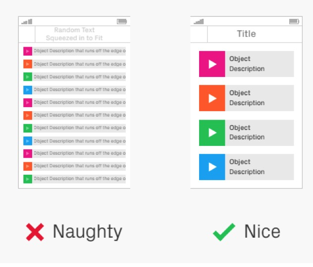 多个对象的对齐也很重要。标题栏、后退按钮、页脚等的边距要保持一致。最好的方法就是用网格,这样就不会乱啦!