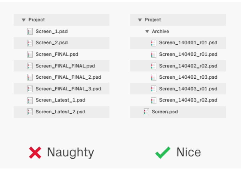 在一天的开始或者某个重要的时间结点,把文件复制好就放在上面那个Archive(档案)文件夹里,命名按照年月日来,写清楚是第几稿就可以了。清爽吧!