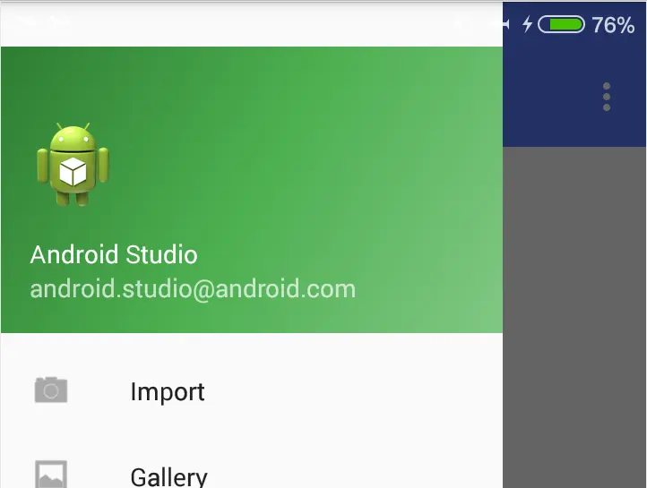 但是这种方法有个缺陷是在DrawerLayout上当侧滑菜单NavigationView滑出来时状态栏会浮在上面。如下图3。目前并未找到解决方案。