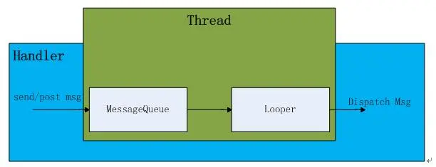 通过一系列的包涵关系,最终Looper、Handler、Message、MessageQueue即发生关联,从而形成一个闭合,开启消息循环。